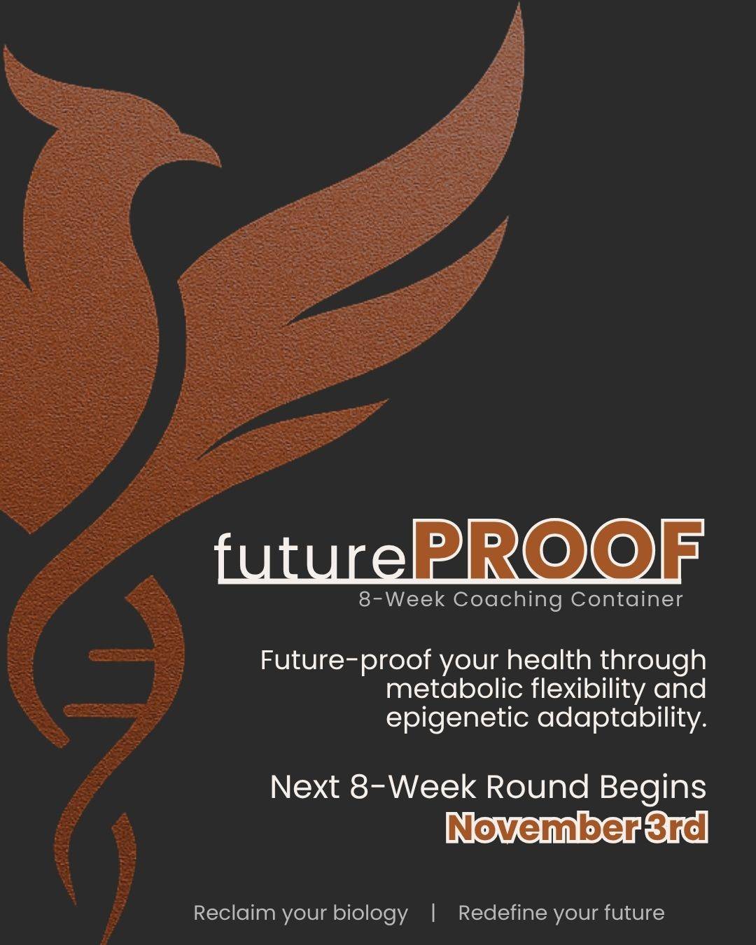 futurePROOF is an immersive 8-week online coaching experience that helps you take control of your biology and build resilience against the chronic diseases of modern life.